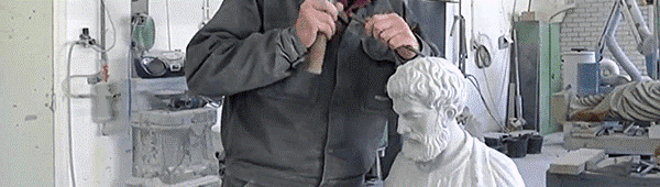 De beeldhouwwerker zorgt voor de finishing touch - foto Meesters In