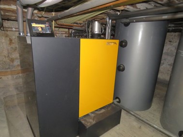 ‘Monumenten zijn bij uitstek voorbeelden van heel duurzame gebouwen. Ze gaan immers al eeuwen mee en hebben historisch gezien een geheel eigen uitstraling en waarde. Maar toch kijk je ook naar hedendaagse eisen en wensen op het gebied van duurzaamheid. Zo heb ik de gevels aan de binnenzijde kunnen isoleren terwijl ik toch de ramen in enkelglas heb gehouden. Enkel glas hoort in mijn ogen bij een monument. Dat het dus op sommige plekken een beetje tocht, neem ik voor lief. Trouwens goed voor het binnenklimaat. Verduurzaming kan ook door je eigen woongedrag aan te passen – een trui aan en niet elk vertrek warm houden. Iets anders is de vermindering van de CO2 uitstoot. Hoe kan een monument daaraan bijdragen? Op zolder hingen drie cv-ketels. Een ervan was eigenlijk al “dood”, een tweede lag op sterven en een derde zou ook niet lang meer mee gaan. Oorspronkelijk leverden zij samen de 95 kilowatt (kW), nodig voor dit pand. Ter vergelijking, voor een “gewoon” woonhuis volstaat 25-30 kW. Vervanging van de drie door één op biobrandstof werkende ketel bleek een uitstekende optie. Alternatieve verwarmingssystemen, waaronder een warmtepomp, vielen om verschillende redenen af. Deze biomassaketel verbrand houtpellets. Kleine blokjes die worden geperst van bewerkingsafval uit de houtindustrie’.