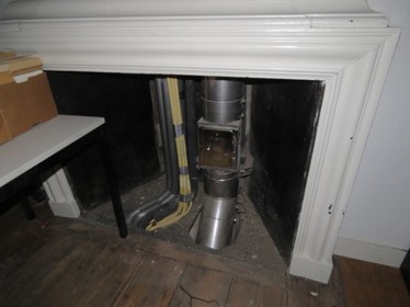 ‘Elk monument biedt zijn eigen, unieke kansen op verduurzaming. Door dit hele gebouw loopt een oud rookkanaal. Dat bleek ruim genoeg voor de nieuwe leidingen voor het transport van de verbrandingslucht uit de kelder naar boven. Daarbij kwamen ook nog leidingen voor tap- en stookwater, die mede worden gevoed door enkele zonnecollectoren. Op zolder nam de nieuwe tapwaterboiler de plaats in van de oude ketels, terwijl in de kelder de biomassaketel kwam te staan. Wat we dus hebben moeten opofferen is de ruimte in de schouwen. Daar is nu een plaat voorgezet om de leidingen uit het zicht te werken. Behouden is het bestaande hoog-temperatuursysteem verwarmingssysteem met radiatoren.