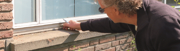 Peter van der Landen inspecteert hang- en sluitwerk taatsraam - foto: Helix