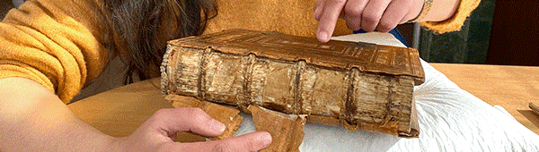 Rachelle Keller toont het werk van een boekrestaurator – foto ERM