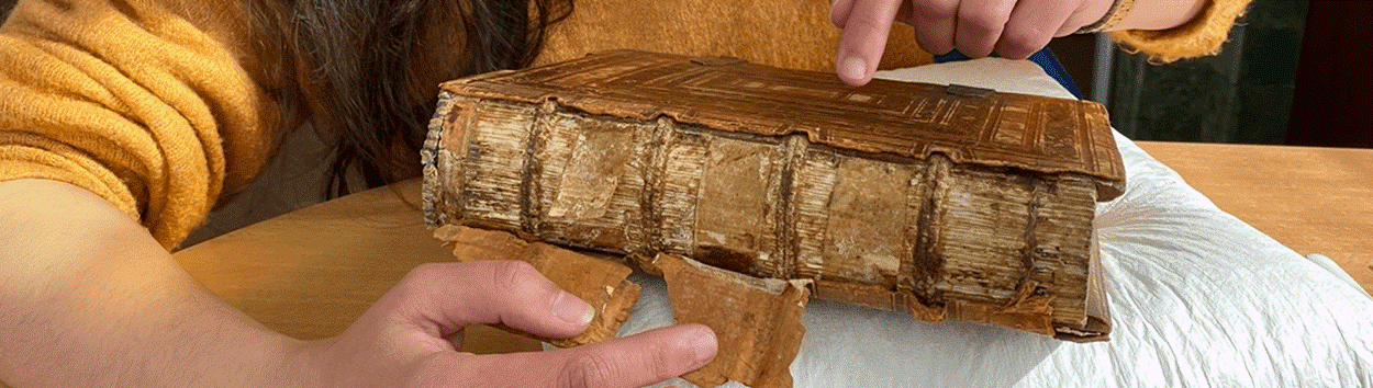 Rachelle Keller toont het werk van een boekrestaurator – foto ERM